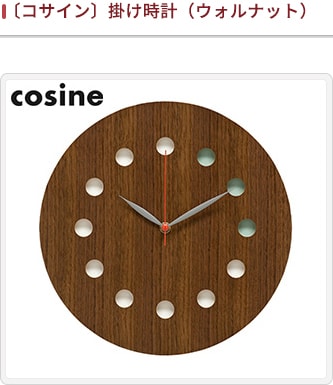 文字盤のカラーがアクセントのシンプルな木製の掛け時計。