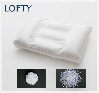 ロフテー2ウェイピローは中が5つのユニットに分かれており、中身のかたよりが少ない構造で首筋を優しく支えます。また素材は表面が「パイプ」、裏面「わた」と二層構造になっており一つの枕で2種類の感触が味わえます。