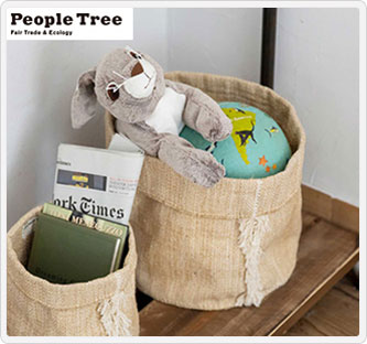 成長が早い一年草のジュートは、光合成が盛んで二酸化炭素もたくさん吸収する環境にやさしい素材です。焼却処分をしても環境に有害な物質を排出せず、土に埋めても完全に分解されます。穀物袋に使われるなど耐久性も抜群。バングラデシュの職人が丁寧に手仕事でつくりました。