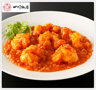 ていねいに下味つけをし油通ししていますので、ぷりぷりのエビの食感がお楽しみいただけます。通常(61/70)の約5倍の大ぶりなサイズ(13/15)のブラックタイガーを使用し、食べやすく1/2カットしております。ピリ辛でありながらもマイルドな卵入りチリソースに仕上げた四川料理の代表的な一品です。