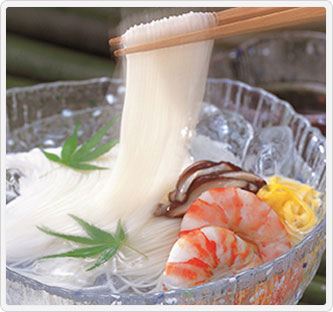 北海道産の小麦を使って、しっかりとした麺のコシと、のど越しの良い手延べそうめんに仕上げました。