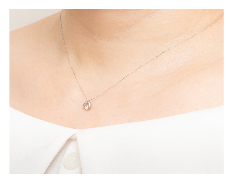 ダイヤモンドは一粒石(0.08ct)を使用、揺れる構造によりダイヤモンド本来の輝きが楽しめる特別な逸品となっています。