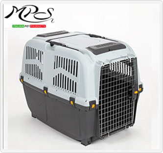 軽くて使いやすいイタリア製ケージ。扉は二重ロックシステムと錆びにくいクロムメッキ加工で安心。別売りの360℃回転キャスター(2個はロック付き)を取り付ければ移動もより快適に。国際航空運用協会の定める基準を満たし、飛行機での運送が可能。