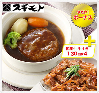 内容量:煮込みハンバーグ 130g×12+国産牛牛すき130g×4