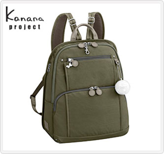 大人の女性が街歩きからちょっとしたレジャーを楽しむためのリュック。外装に4つのファスナーポケットを装備し、さらに内装のポケット機能も充実している。本体素材には、撥水、撥油機能に優れたテフロン?加工を施した生地を採用。メインファスナーには不用意に開かないようにするセーフティロック付き。小物類をスムーズに出し入れできるファスナー付きフロントポケット。キーフック付き。