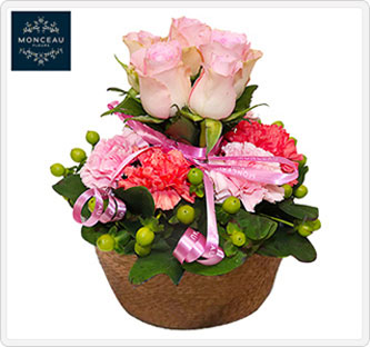 キュートで元気なお母さんに、女性に人気のバラの花束を一緒にしました。優しい色で、かわいく飾っていただけます。