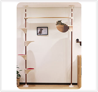 ポールタイプのキャットタワーで、小スペースで設置可能。インテリアに合い、取り付け取り外しが簡単です。自由に高さや角度を変えられます。ステップは、ネジ不要でスライドさせるだけで簡単取り付け可能です。