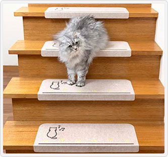 おくだけで取り付け、取り外し簡単です。マットの裏面が、階段にピタッと吸着するのでズレません。