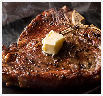 肉の王様ジューシーな「サーロイン」と上質で希少な「ヒレ」の高級肉の2種を楽しめる贅沢でワイルドな一品。旨味が凝縮された骨周りの肉もまた格別な味わいです。迫力のある大きさも好評です。