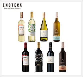 チリ、南アフリカ、フランス、オーストラリアの紅白ワインです。全て品種が違うので飲み飽きず楽しんでいただけます。