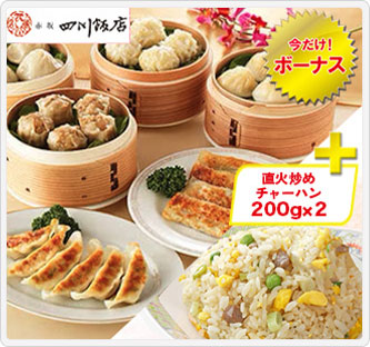 キャンペーン期間中、今だけボーナスとして直火炒めチャーハン200g×2をお付けします。