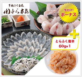 キャンペーン期間中、今だけボーナスとしてとらふく塩辛60gをお付けします。
