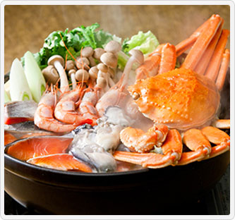ずわい蟹、鮭、海老、蟹真丈、イカ真丈、鶏モモ肉、うどんの豪華カニ鍋セットです。海鮮盛りだくさんのあったか鍋で冬の味覚をご賞味ください。