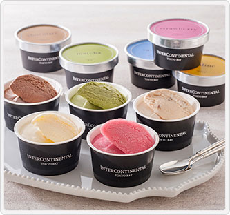 素材の味が引き立つよう作りあげたなめらかな口どけのアイス。定番のバニラの他に、シェフおすすめのプラリネなど5種類のフレーバーをセットにしました。