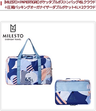 MILESTO×PAPIERTIGREコラボ 大容量折りたたみボストンバッグと圧縮機能ですっきり収納できるパッキングオーガナイザーのセット。