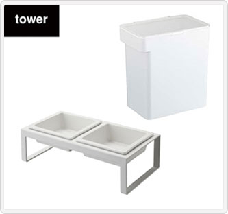 フードとお水や、2種類のフードなど、自由に組み合わせて使えるボウルとスタンドのセット。+リビングやキッチンにそのまま置けるスタイリッシュなペットフードストッカー。