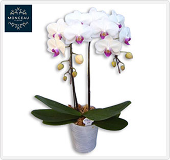 コンパクトでかわいらしいミディ胡蝶蘭。縁起の良い赤と純白な白とのコントラストをお楽しみいただけます。