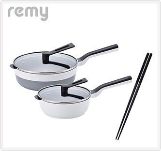 レミパンプラスは直径24cmのスタンダードサイズ。レミパンミニは直径20cmのコンパクトサイズ。ガラス蓋は自立、蒸気穴を設置し、吹きこぼれを抑制します。IH200V対応。remyシリーズのハンドルにピタッとくっつく、つかめる菜箸は耐熱性も高く、揚げ物料理にも使えます。