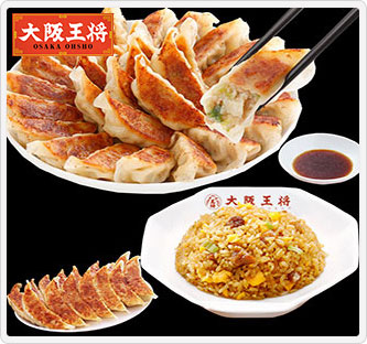 「元祖肉餃子」は大阪王将伝統の味をご家庭で気軽にお楽しみいただけるよう、工夫をこらした当店自慢の商品です。「直火炒めチャーハン」はレンチン簡単調理でプロの味!高温直火で炒め、素早く冷凍!美味しさそのまま本格炒飯を再現!「龍王餃子」は、1粒35gの大粒サイズで生姜の風味と春雨の食感が食欲そそります。