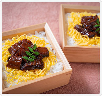うなぎを柔らかいまま閉じ込めるように作ったご飯のお供。