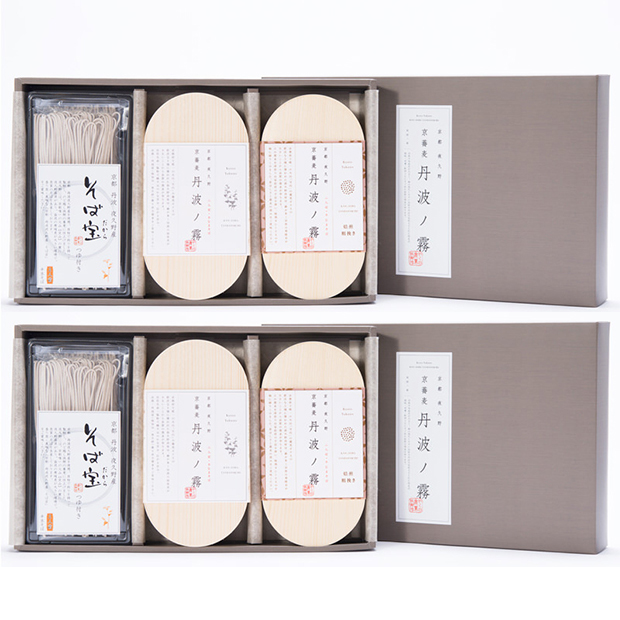 内容量:[半なま京蕎麦丹波ノ霧(木製わっぱ入り)(半なま麵80g×2、濃縮つゆ25ml×2)、半なま焙煎粗挽きそば(木製わっぱ入り)(半なま麵80g×2、濃縮つゆ25ml×2)、半なま そば宝(半なま麵80g×2、濃縮つゆ25ml×2)]×2