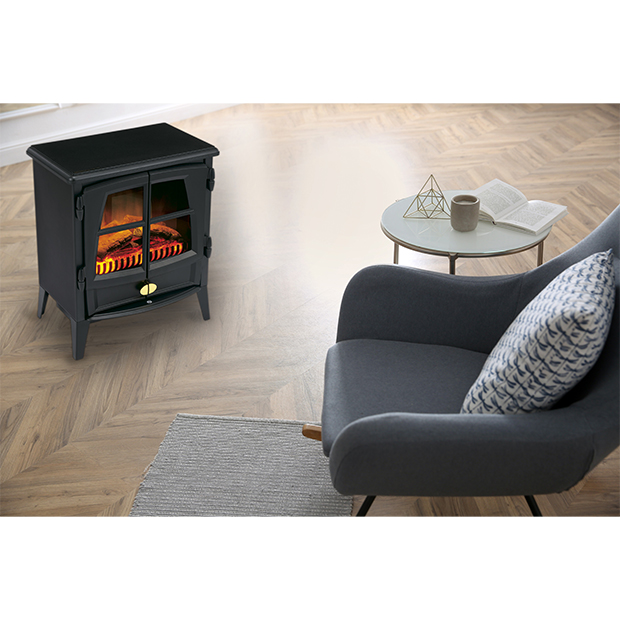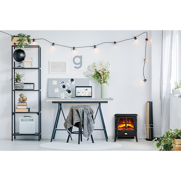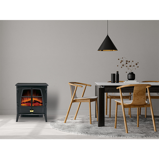 リアルな疑似炎と薪を爆ぜるサウンドが癒しを与え、足元から暖めてくれるファンヒーターがくつろぎ時間を提供します。