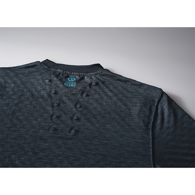 シャツは背中部分肩甲骨内側に沿って、フェライト永久磁石10個、パンツは仙骨に沿って6個をコラントッテ独自のN極S極交互配列で配置しています。磁力が装着部位の血行を促進し、筋肉のコリを緩和、回復を促します。肌面に特殊凹凸加工を施したSwitch-Tex(スイッチテックス)生地を全面採用し、体の動きにともなって皮膚と擦れることで、心地良いリラックスタイムへと導きます。