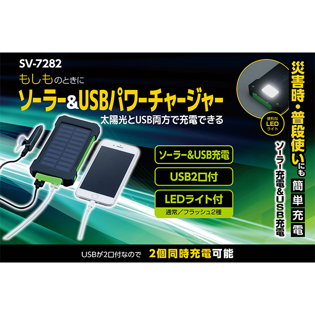 もしもの時に太陽光(ソーラー)とUSB両方で充電できるモバイルバッテリー。