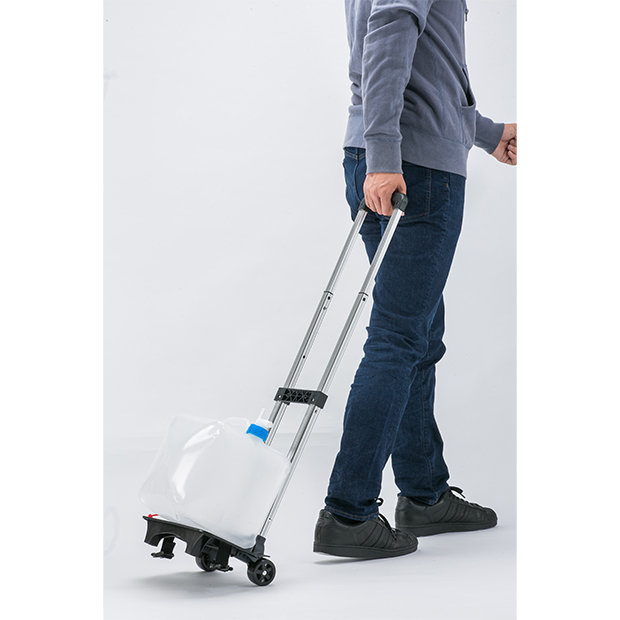 キャリー付き防災リュックはキャリーカートとリュックの取り外しが可能。給水タンクなど、重い荷物をカートに載せて運ぶことが出来ます。