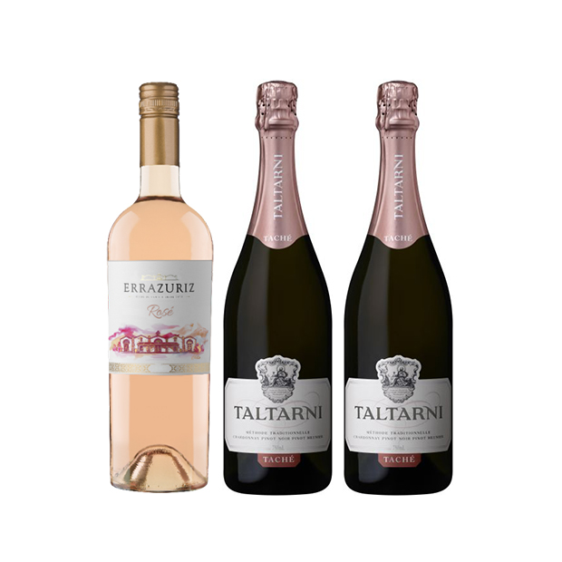 2本目と3本目は、オーストラリアの老舗タルターニが造るロゼ・スパークリング「ブリュット タシェ」を2本。「タシェ」とは「色づいた」の意味で、わずかに赤ワインをブレンドした美しい色合いが特徴です。シャンパンと同じ瓶内二次発酵方式で造られた上質なスパークリングは繊細な泡立ちとコクのある味わいが魅力です。中華料理やエスニック料理とも好相性です。