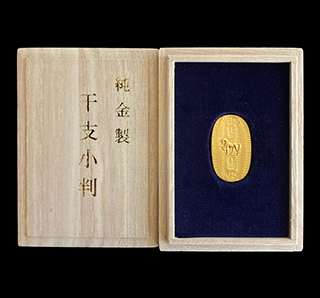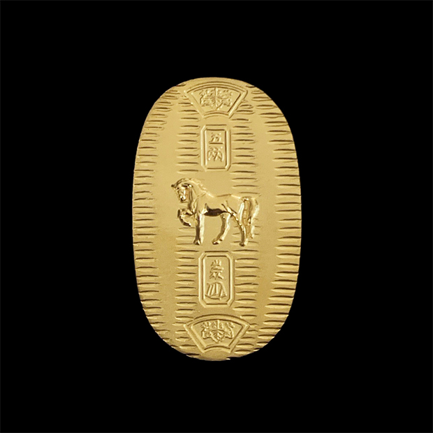 純金製の小判は、金ならではの艶やかで深みのある輝きが際立つ、至高の逸品です。