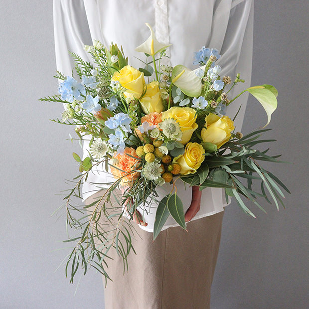 ※ケニアバラにあわせるのは、その時々に入荷のある季節の草花です。