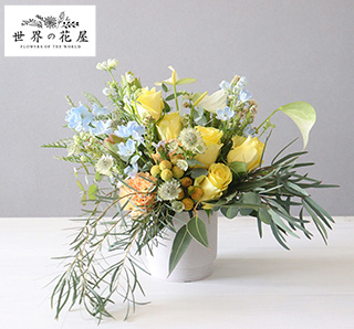 「世界の花屋」ケニアバラと、とりどりの季節の草花を使ったアレンジメント