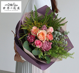 「世界の花屋」ケニアバラをシンプルに束ねたブーケ