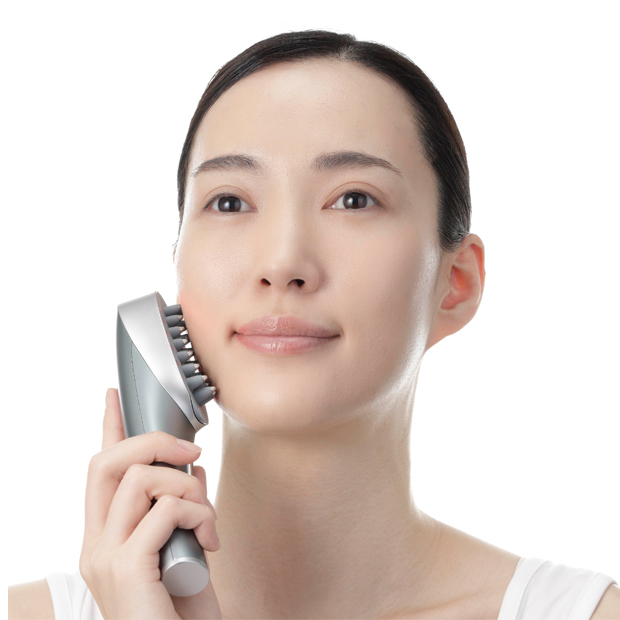 新形状の“ニードル”ブラシで頭筋&表情筋を刺激するブラシ型美顔器。防水仕様(IPX5)のため、シャンプー時などお風呂で使える。