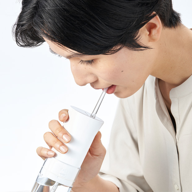 ねじれながら真っすぐに放たれるトルネード水流が歯間部と歯周の汚れを除去し口腔ケア。水圧調整は3段階+最大レベルよりも水圧を一時的に強くできるBOOSTモードを搭載。お好みに合わせて水流の強さを調節できます。さらに水の飛び散りを防ぐ機能を搭載し初心者でも安心してお使いいただけ、防水機能(IPX7)だからお風呂の中でもケア可能。付属ノズルは、トルネード水流でしっかり洗浄する「ジェットノズル」と広範囲を優しい使用感でケアする「ソフト回転ノズル」、舌のケアに最適な「舌クリーナーノズル」の3タイプ。口腔内の状態にあわせてノズルを選べます。