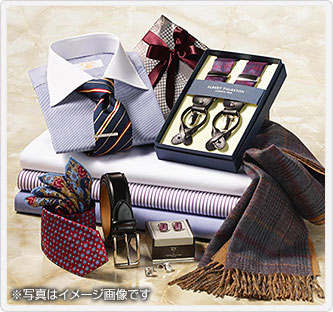 銀座英國屋のオーダーワイシャツをはじめ、ネクタイ・ベルト・カフスなどの洋品類やジャケット・パンツのプレタポルテなど、幅広いアイテムからお選びください。100,000円相当のギフトカードをお届けいたします。