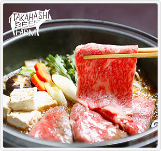 独自設計の飼料を与え宮城・山形に限定した稲わらを使用しております。その蔵王黒毛和牛のロースをすき焼きでお届けいたします。セットの特製割り下には出羽桜酒造の*チャンピオン・サケ「出羽の里」を使用し香り高い味わいに仕上げております。