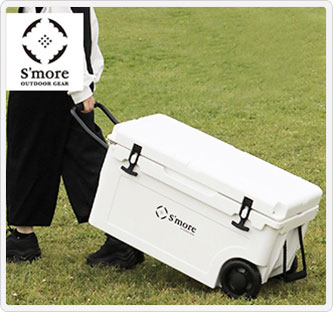 車輪と取手付きで重くてもどこまでも運べて持ち運びやすい!稼働式の大容量クーラーボックスです。中には保冷パックがついているので別途での保冷剤準備が不要で、夏場の食材や飲み物の保存もしっかりできます。開閉しやすく握りやすいグリップでワンタッチで開けられる設計になっております。栓抜きもついているので、キャンプだけでなく、BBQやビーチシーンでも大活躍すること間違いなしです!