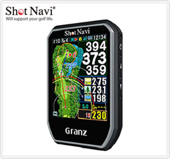 Shot NaviのハンディタイプがパワーUpして登場。カラー液晶、タッチパネルを搭載しており格段に視認性・操作性が向上しました。レイアウト上をタッチした地点までの距離とその地点からグリーンまでの3点間の距離が一度にわかるため、次の一打を考えた戦略が可能です。また、現在地からグリーンまでの高低差や高低差を加味した目安距離も自動で表示します。グリーンまでの距離に加えて各ハザードまでの残距離も表示します。Granzを使ってぜひ、あなたのスコアUpにお役立てください。