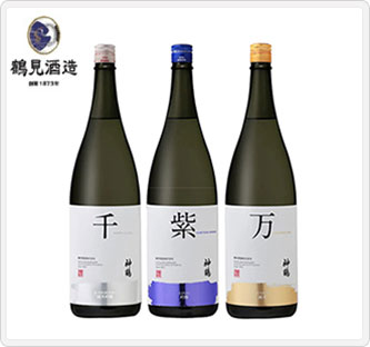 純米吟醸、吟醸、純米の日本酒3種のセット品。色とりどりの花が咲き乱れているようすを表す言葉、千紫万紅から3文字とった〔神鶴 千・紫・万〕は、華やかに美しく咲き乱れる花々をイメージしたワインボトルに近い外観にしております。日常的に楽しめるシリーズとなっており、贈り物に最適です。