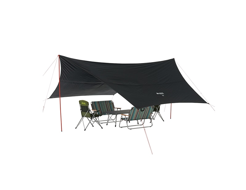 耐風性に優れた大型ヘキサゴンタープ 驚異のUVカット率96.5%、遮光性99.2%! ブラックカラーにより、UVCUT率96.5%、遮光性99.2%を実現。野外の強烈な日差しを遮るため、高い断熱効果を発揮する。自在なアレンジに対応し、耐風性にすぐれた構造の大型ヘキサゴンタイプ。幅570cmなのでフレキシブルな張り方が楽しめます。両方向からファスナーが開けられる収納バッグ付きです。