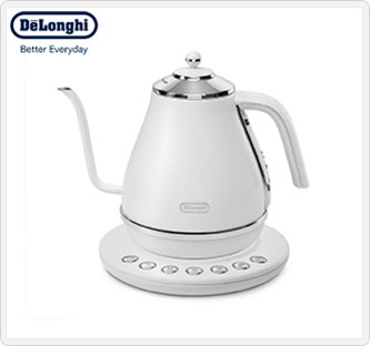 注ぎやすさとデザインにこだわった、デロンギ初の細口タイプに温度設定機能をプラス。