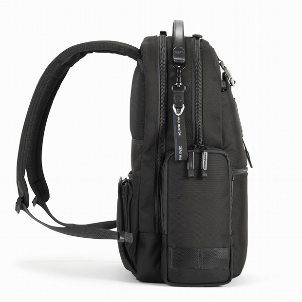 背面にはセキュリティ性の高いファスナーポケットを採用し、大切な貴重品の収納に最適。またスーツケースのハンドルに通せるセットアップ機能も搭載しています。