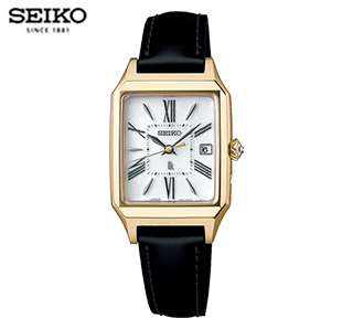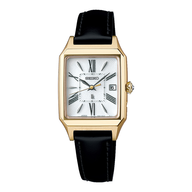 四角いケースとローマ字インデックスのクラシカルで落ち着いた雰囲気の時計です。クリスタルガラス入りのりゅうずは飾らないおしゃれ感で腕元を華やかにします。ソーラー充電と電波受信機能を備え、正確な時間を刻みます。