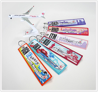 JALグループ6社の国内線にご搭乗いただいたお子さま向けに機内でプレゼントしている、ご当地空港フライトタグキーホルダー。