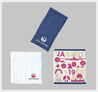 ハンドタオルはJAL初の国際線DC-6B型機「City of Tokyo号」をデザインしました。