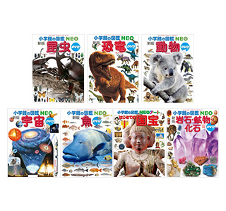 3歳から高学年までを対象とした定番かつロングセラーの図鑑NEO(DVD付き)6冊に、図鑑NEOアートシリーズから、話題の「はじめての国宝」を加えた計7冊のセットです。