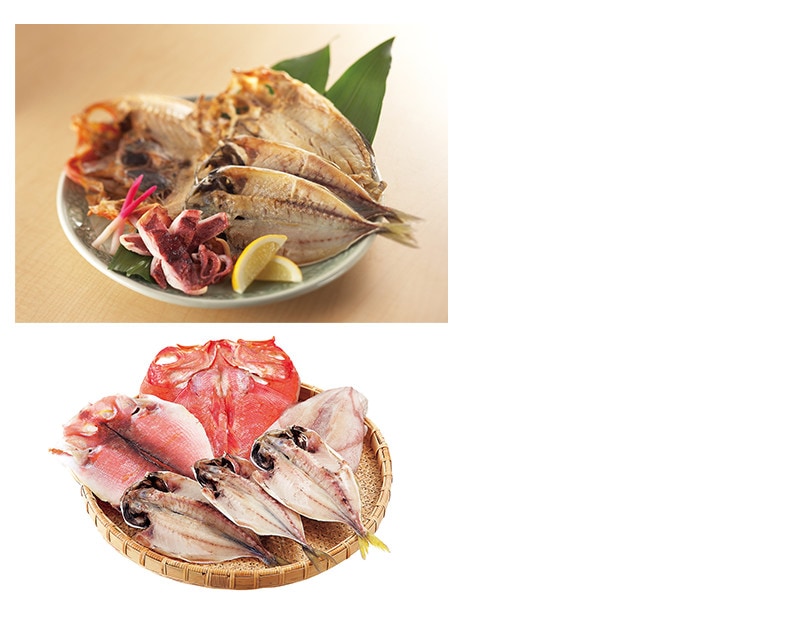 内容量:あじひもの3枚、甘鯛・赤いか・金目鯛×各1枚