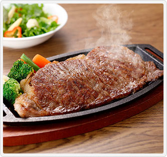 松阪牛は日本三大和牛の1つで、三重県雲出川から宮川にかけての地区で肥育された黒毛和種の未経産の雌牛に限られ、さらに厳しい管理のもとに生産されています。霜降りの旨みが際立つサーロインをステーキでお楽しみください。